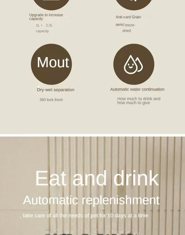 帶飲水器的自動寵物餵食器 — 貓狗用大容量高架碗